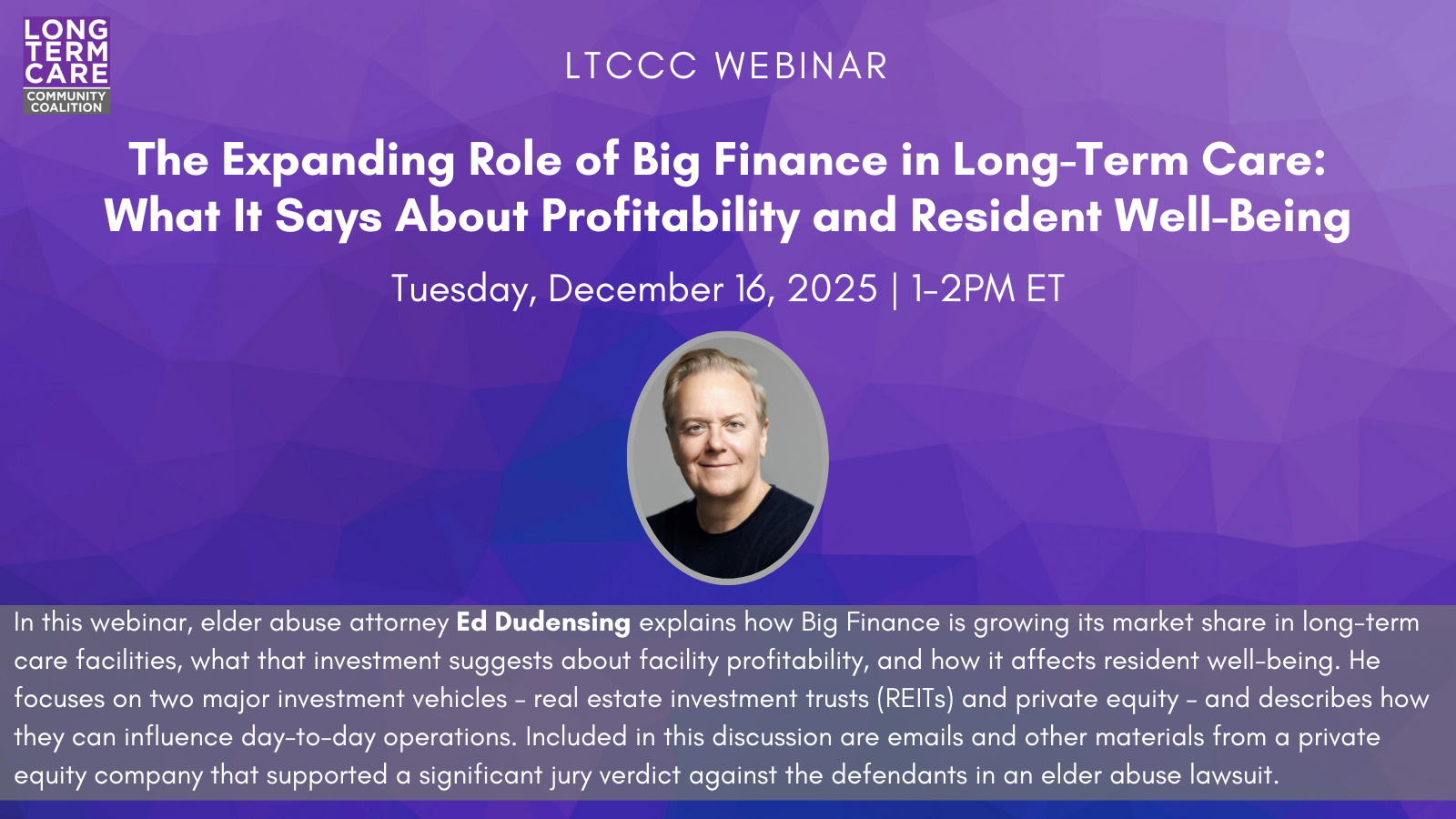 Webinar: The Expanding Role of Big Finance in Long-Term Care: What It Says About Profitability and Resident Well-Being